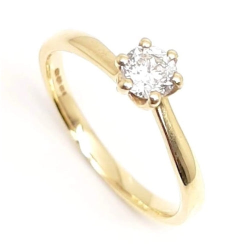 18ct yellow gold solitaire diamond ring.