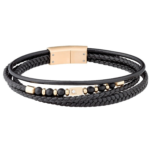 Multi Strand GP Stainless Steel & Black Leather Bracelet
